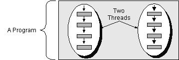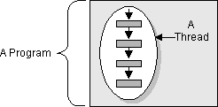 All programmers are familiar with writing sequential programs. You've probably written a program that displays "Hello World!", or sorts a list of names, or computes a list of prime numbers. These are sequential programs: each has a beginning, an execution sequence, and an end. At any given time during the runtime of the program there is a single point of execution.A thread is similar to the sequential programs described previously. A single thread also has a beginning, a sequence, and an end and at any given time during the runtime of the thread, there is a single point of execution. However, a thread itself is not a program; it cannot run on its own. Rather, it runs within a program. The following figure shows this relationship.