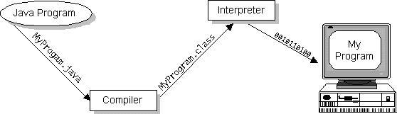 Click the image to view it at its natural size.Java bytecodes help make "write once, run anywhere" possible. You can compile your Java program into bytecodes on any platform that has a Java compiler. The bytecodes can then be run on any implementation of the Java VM. For example, the same Java program can run on Windows NT, Solaris, and Macintosh.