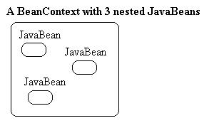 BeanContextinterface. In its most basic form, aBeanContextis used to logically group a set of related java beans, bean contexts, or arbitrary objects. JavaBeans nested into aBeanContextare known as "child" beans. Once nested, a child bean can query itsBeanContextfor various membership information, as illustrated in the following examples.Here are some possible