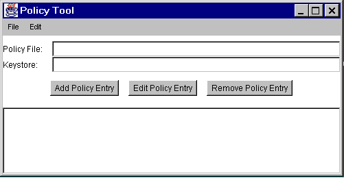 To start Policy Tool, simply type the following at the command line:policytoolThis brings up the Policy Tool window. Whenever Policy Tool is started, it tries to fill in this window with policy information from what is sometimes referred to as the "user policy file," which by default is a file named